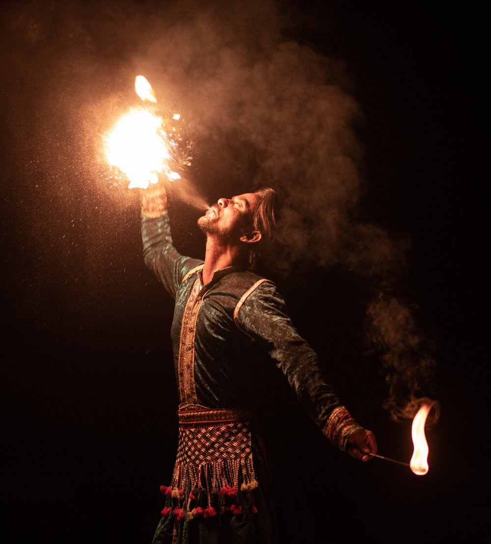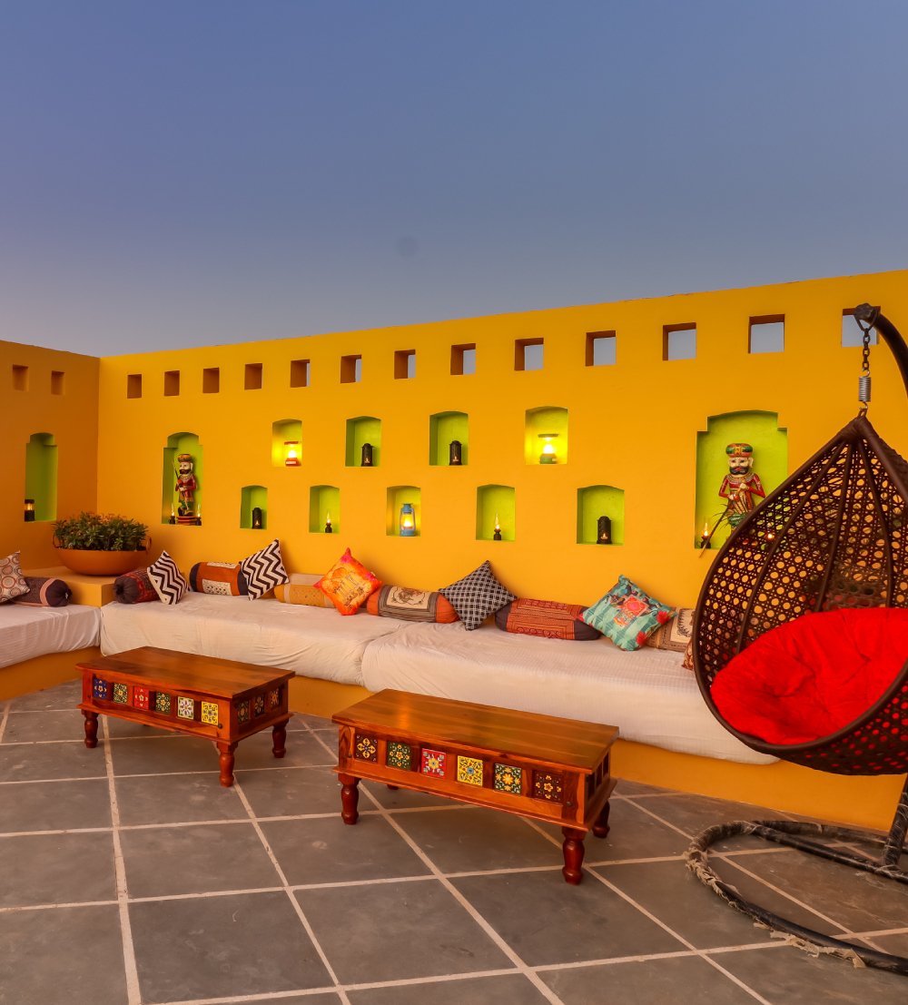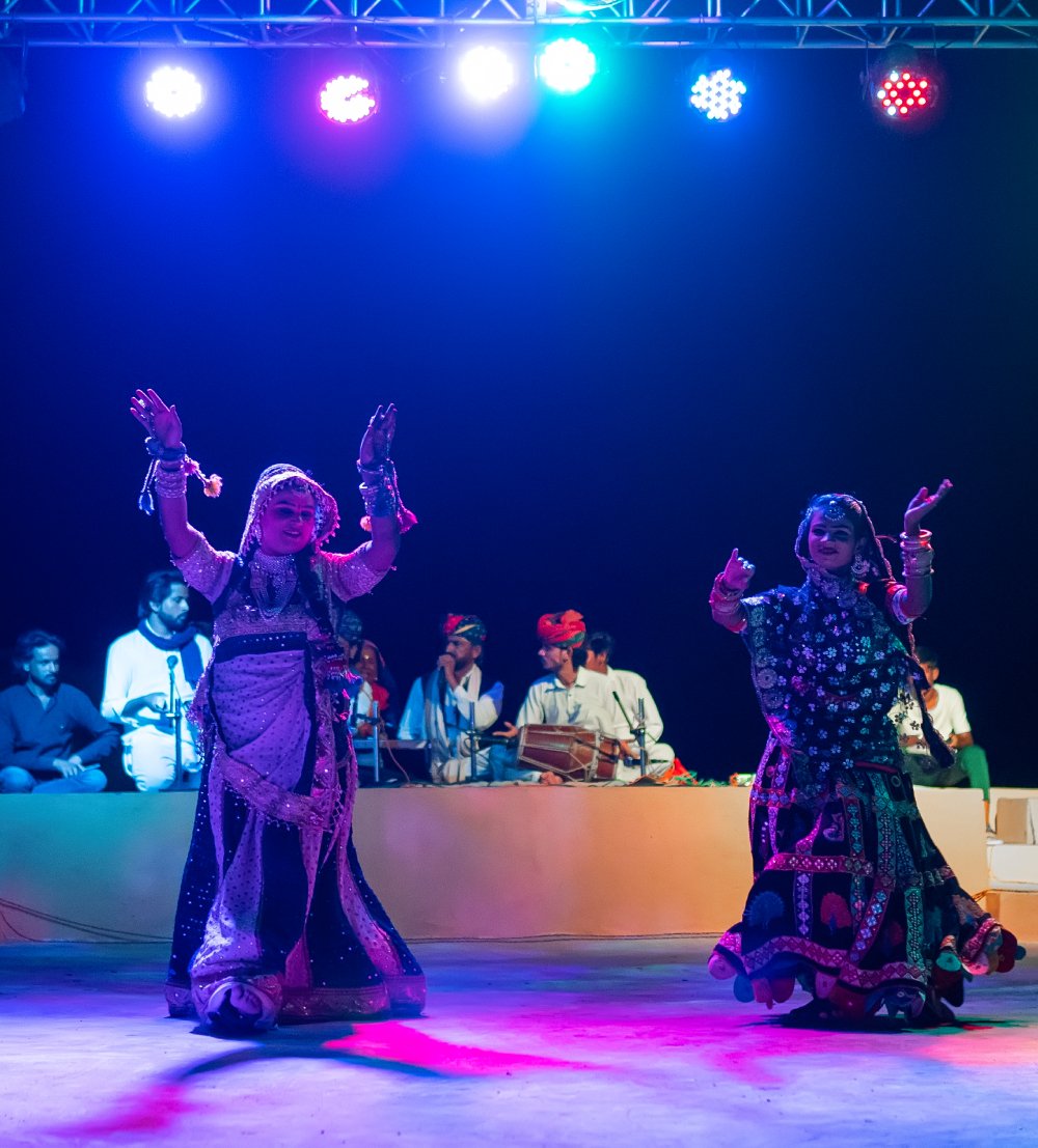 Delight in the vibrant spirit of Rajasthan through folk dance performances, live music, fire shows, and genuine Rajasthani hospitality.